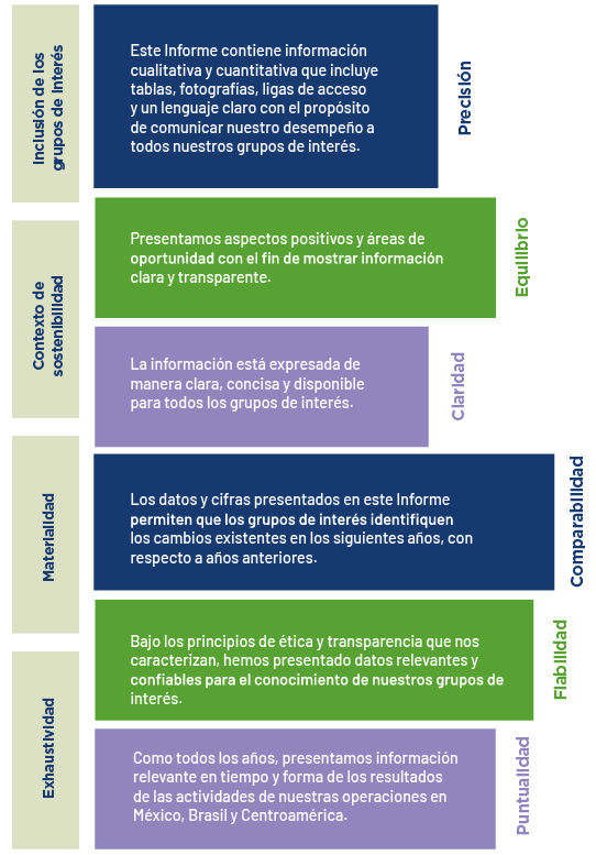Presentamos nuestro sexto informe de sustentabilidad y el quinto informe integrado. Este reporte se elabora de manera anual y de conformidad con los Estándares GRI: opción Esencial, establecidos por el Global Reporting Initiative (GRI). Incluye los resultados del desempeño y eventos en materia económica, social, ambiental y de gobierno corporativo que tuvieron lugar en el periodo comprendido entre el 1° de enero al 31 de diciembre de 2019.
